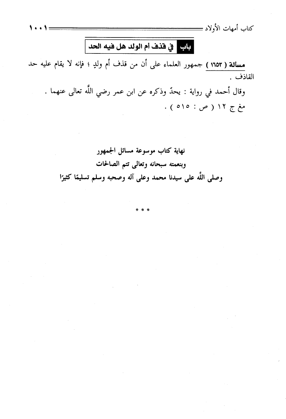 مسألة (1653) جمهور العلماء على أن من قذف أم ولدٍ؛ فإنه لا يقام عليه حد القاذف.