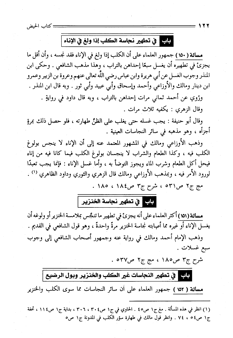 مسألة (152) جمهور العلماء على أن سائر النجاسات مما سوى الكلب والخنزير