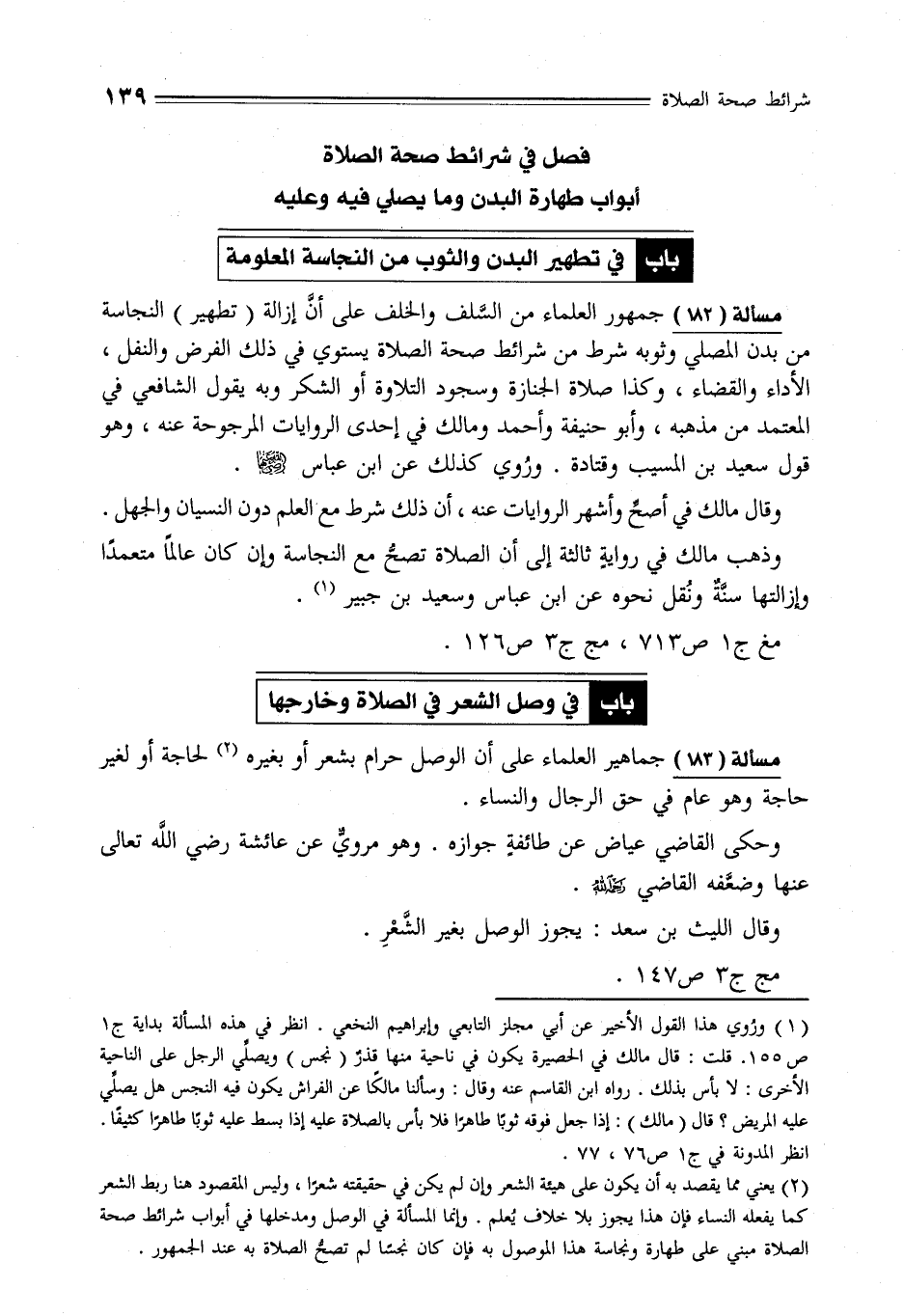 (¬2) يعني مما يقصد به أن يكون على هيئة الشعر وإن لم يكن في حقيقته شعرًا, وليس المقصود هنا ربط الشعر كما يفعله النساء فإن هذا يجوز بلا خلاف يُعلم. وإنما المسألة في الوصل ومدخلها في أبواب شرائط صحة الصلاة مبني على طهارة ونجاسة هذا الموصول به فإن كان نجسًا لم تصح الصلاة به عند الجمهور.