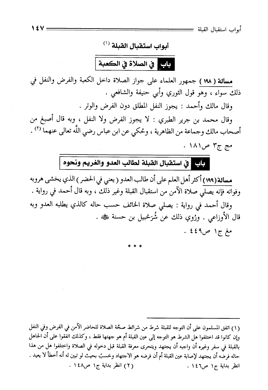 (¬1) اتفق المسلمون على أن التوجه للقبلة شرط من شرائط صحَّة الصلاة للحاضر الآمن في الفرض وفي النفل وإن كانوا قد اختلفوا هل الشرط هو التوجه إلى عين القبلة أم هو جهتها فقط، وكذلك اتفقوا على أن الجاهل