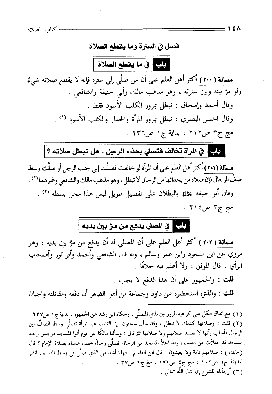 مسألة (202) أكثر أهل العلم على أن المصلي له أن يدفع من مرّ بين يديه، وهو