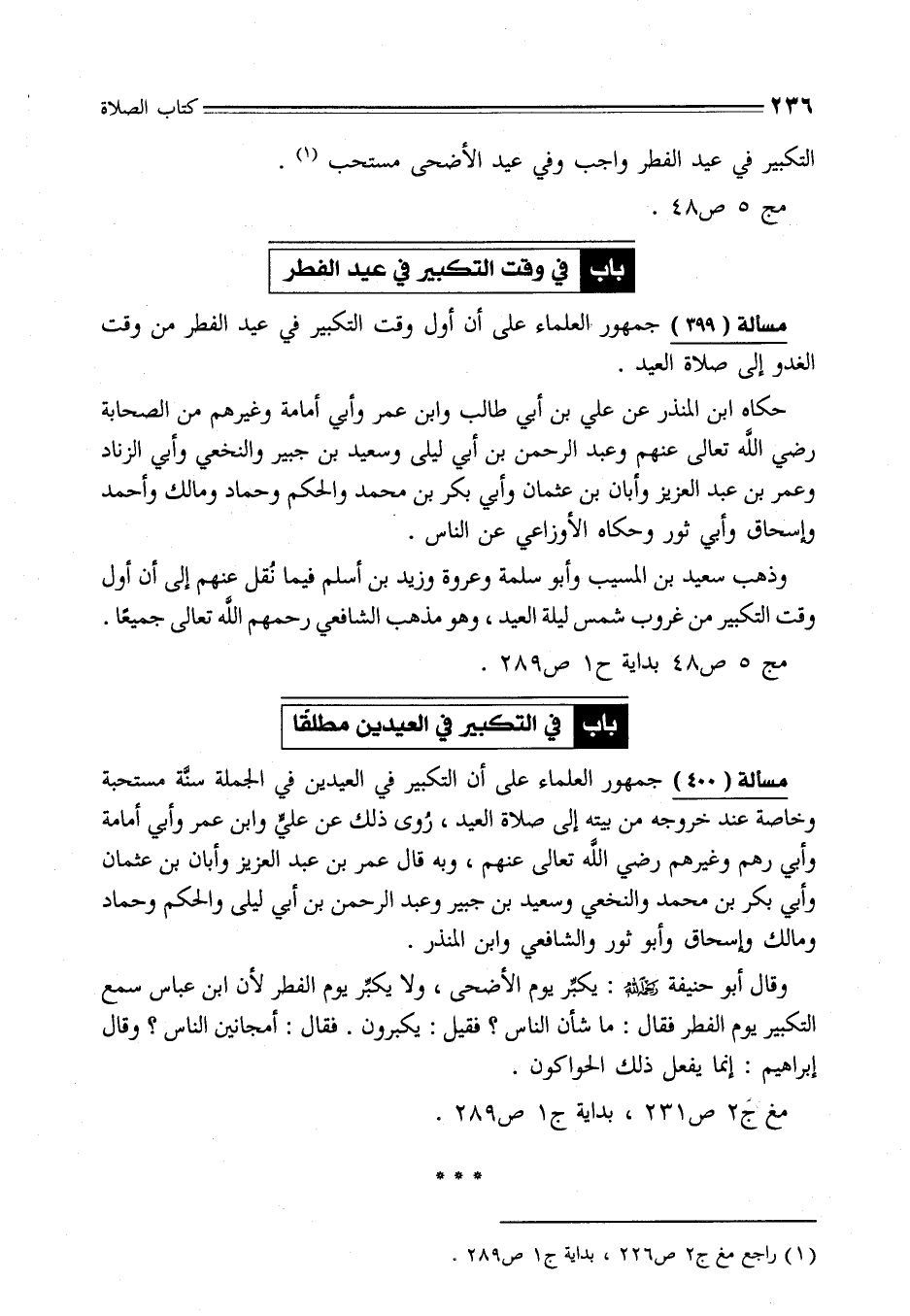مسألة (399) جمهور العلماء على أن أول وقت التكبير في عيد الفطر من وقت الغدو إلى صلاة العيد.