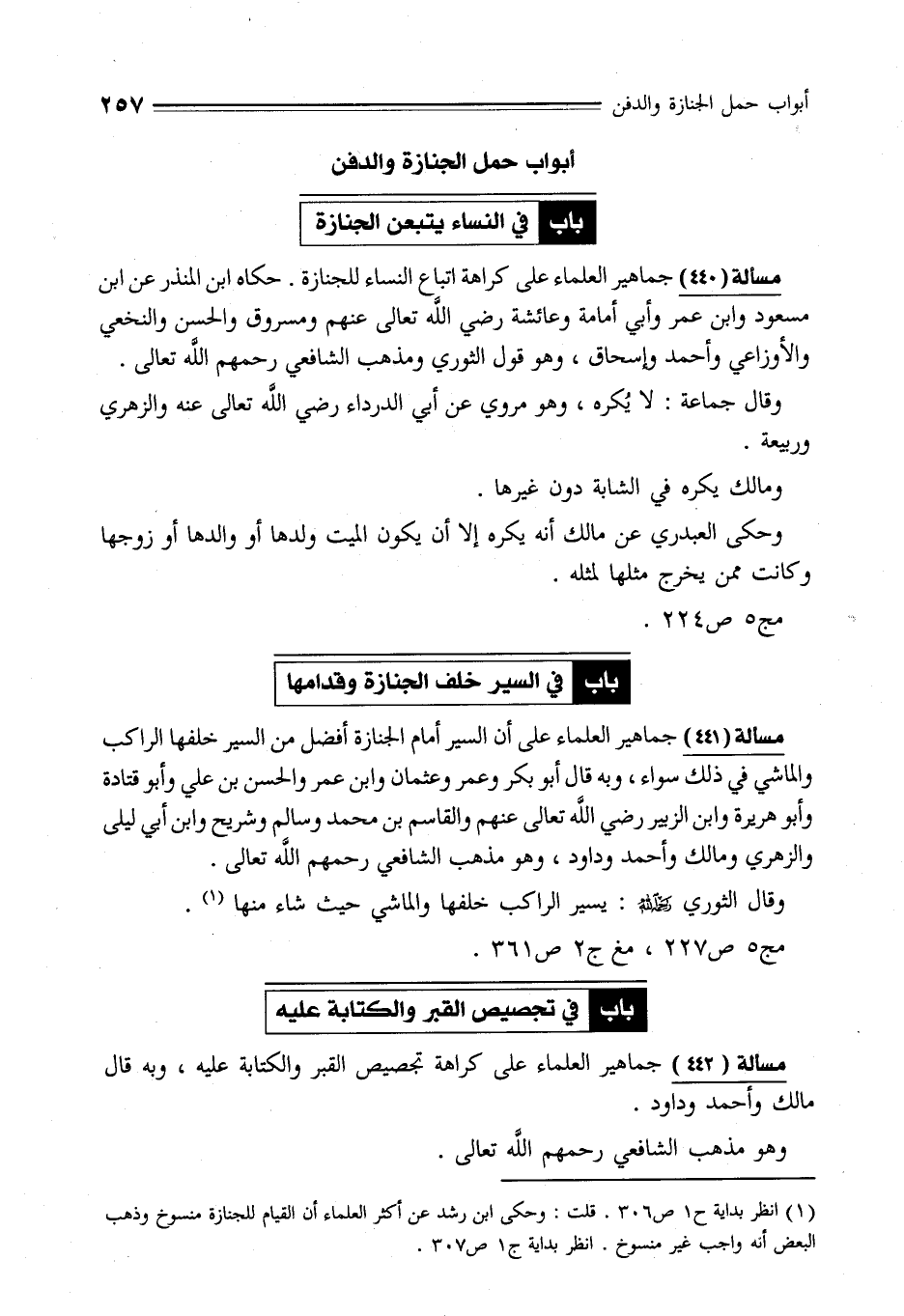 (¬1) انظر بداية ح 1 ص 306. قلت: وحكى ابن رشد عن أكثر العلماء أن القيام للجنازة منسوخ وذهب البعض أنه واجب غير منسوخ. انظر بداية ج 1 ص 307.