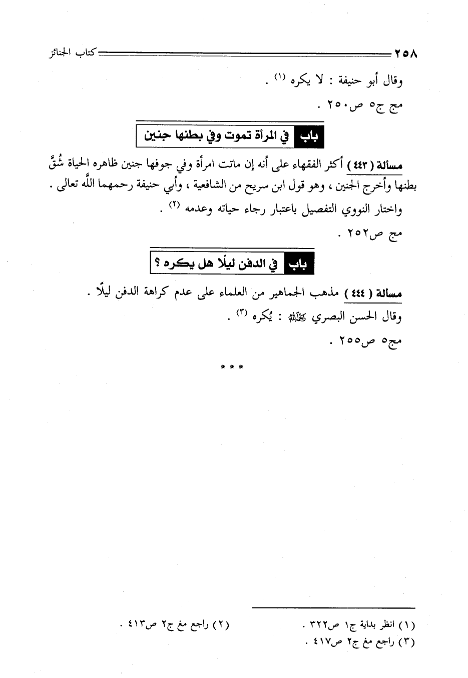مسألة (444) مذهب الجماهير من العلماء على عدم كراهة الدفن ليلًا.
