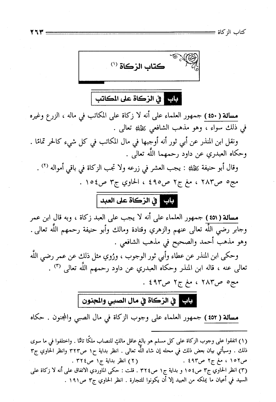 مسألة (452) جمهور العلماء على وجوب الزكاة في مال الصبي والمجنون. حكاه