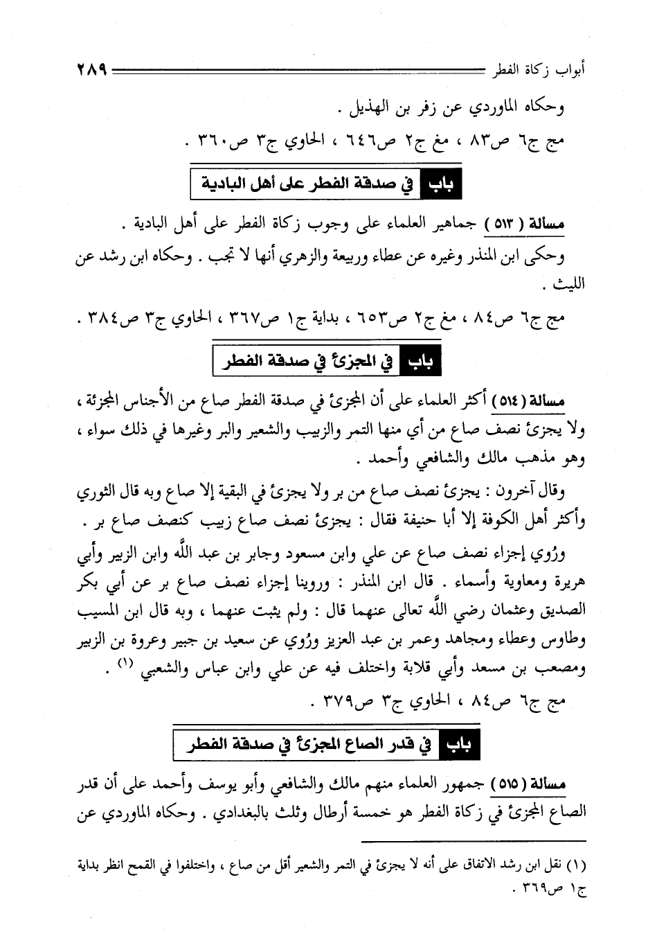مسألة (513) جماهير العلماء على وجوب زكاة الفطر على أهل البادية.