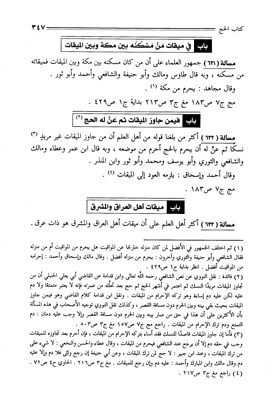 مسألة (631) جمهور العلماء على أن من كان مسكنه بين مكة وبين الميقات فميقاته من مسكنه، وبه قال طاوس ومالك وأبو حنيفة والشافعي وأحمد وأبو ثور.