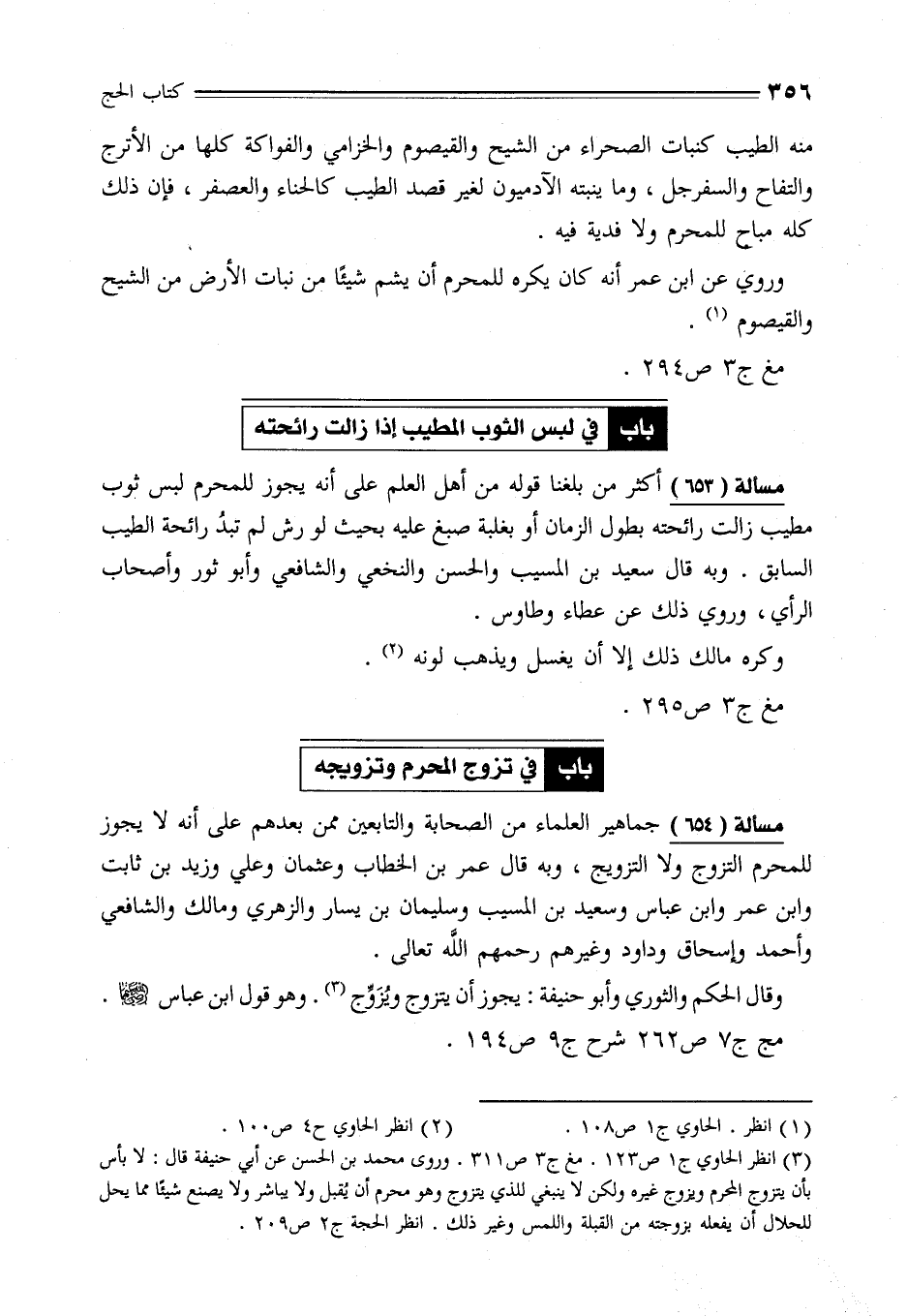 (¬3) انظر الحاوي ج 1 ص 123. مغ خ 3 ص 311. وروى محمَّد بن الحسن عن أبي حنيفة قال: لا بأس بأن يتزوج المحرم ويزوج غيره ولكن لا ينبغي للذي يتزوج وهو محرم أن يُقبل ولا يباشر ولا يصنع شيئًا مما يحل للحلال أن يفعله بزوجته من القبلة واللمس وغير ذلك. انظر الحجة ج 2 ص 209.