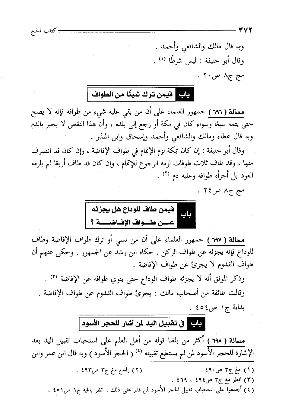 مسألة (697) جمهور العلماء على أن من نسي أو ترك طواف الإفاضة وطاف للوداع فإنه يجزئه عن طواف الركن. حكاه ابن رشد عن الجمهور. وحكى عنهم أن طواف القدوم لا يجزئ عن طواف الإفاضة.