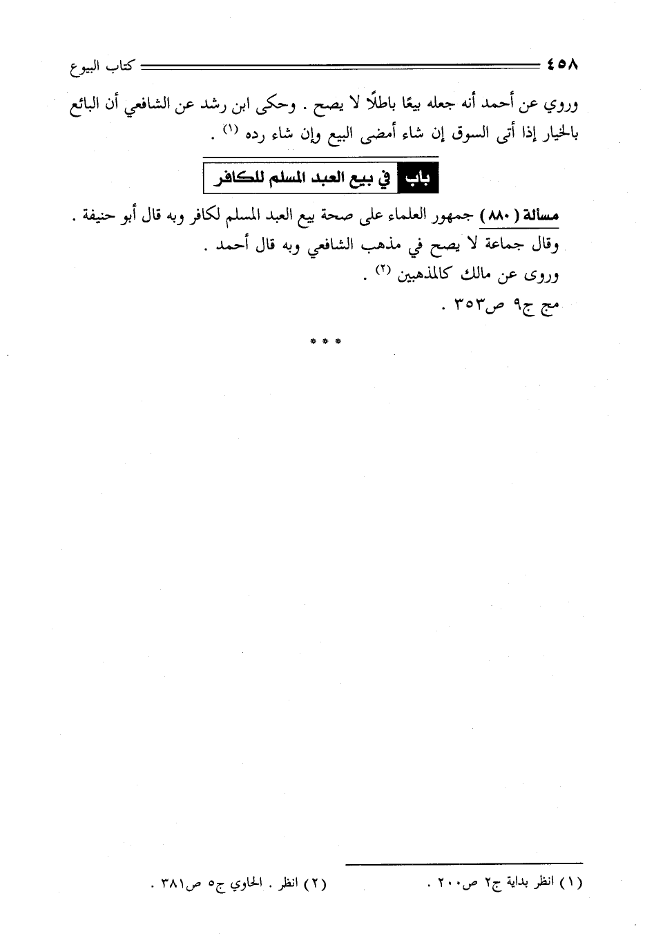 مسألة (880) جمهور العلماء على صحة ييع العبد المسلم لكافر وبه قال أبو حنيفة.