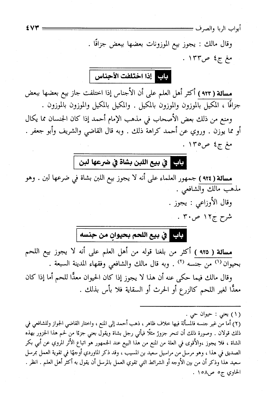 مسألة (923) أكثر أهل العلم على أن الأجناس إذا اختلفت جاز بيع بعضها ببعض جزافًا، المكيل بالموزون والموزون بالمكيل. والمكيل بالمكيل والموزون بالموزون.