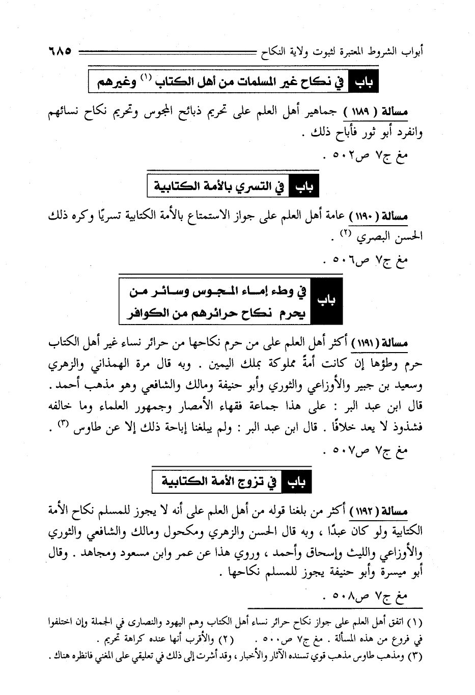 (¬1) اتفق أهل العلم على جواز نكاح حرائر نساء أهل الكتاب وهم اليهود والنصارى في الجملة وإن اختلفوا في فروع من هذه المسألة. مغ ج 7 ص 500.