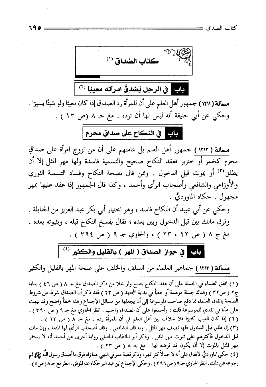 (¬4) حكى الماورديُّ الاتفاق على أنه لا حد لأكثر المهر، وذكر قصة عمر في النهي عما زاد فوق ما أصدق رسول الله - صلى الله عليه وسلم - ثم رجوعه عن ذلك. انظر الحاوي ج 9 (ص 396). وحكى الإجماع ابن عبد البر حكاه عنه الموفق. انظر مغ ج 8 (ص5).