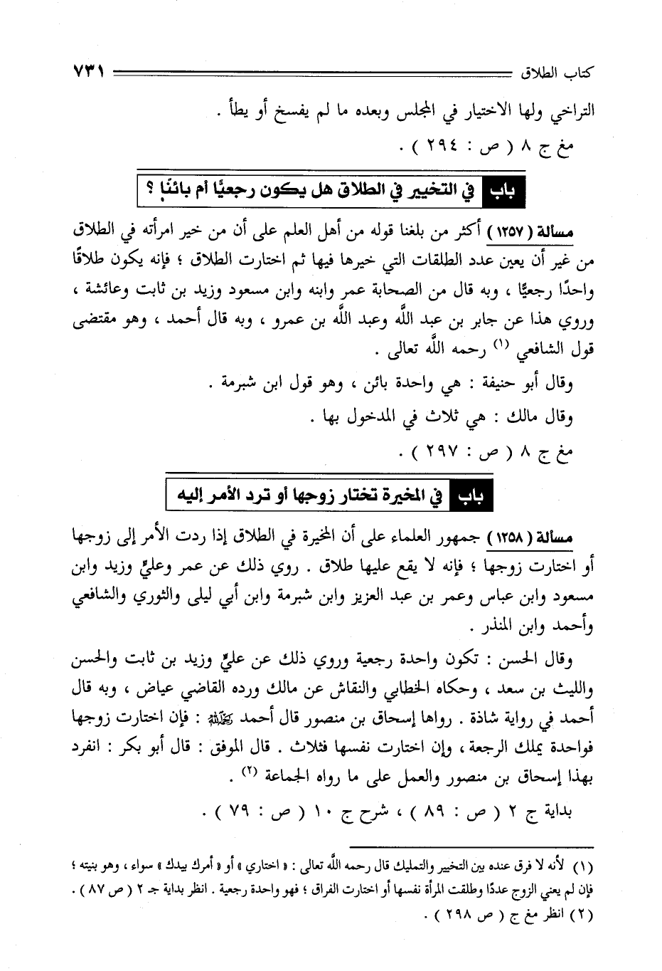 باب في التخيير في الطلاق هل يكون رجعيًّا أم بائنًا؟