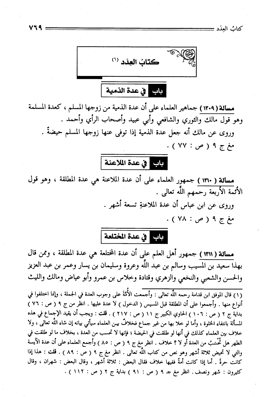 مسألة (1309) جماهير العلماء على أن عدة الذمية من زوجها المسلم، كعدة المسلمة وهو قول مالك والثوري والشافعي وأبي عبيد وأصحاب الرأي وأحمد.