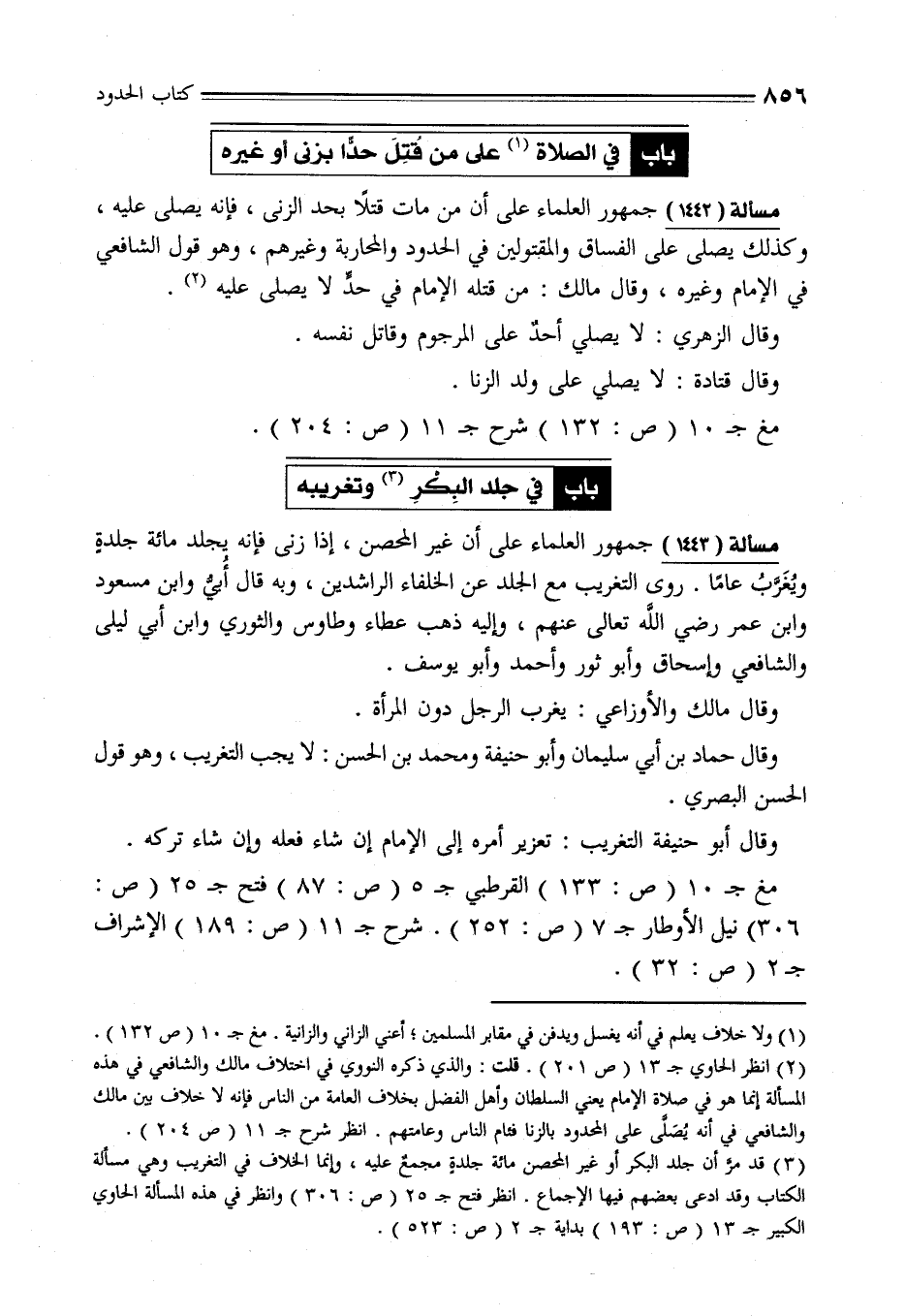 (¬2) انظر الحاوي جـ 13 (ص 201). قلت: والذي ذكره النووي في اختلاف مالك والشافعي في هذه المسألة إنما هو في صلاة الإِمام يعني السلطان وأهل الفضل بخلاف العامة من الناس فإنه لا خلاف بين مالك والشافعي في أنه يُصَلَّى على المحدود بالزنا فئام الناس وعامتهم. انظر شرح جـ 11 (ص 204).