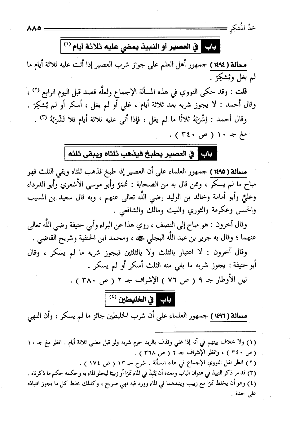 (¬1) ولا خلاف بينهم في أنه إذا غلي وقذف بالزبد حرم شربه ولو قبل مضي ثلاثة أيام. انظر مغ جـ 10 (ص 340)، وانظر الإشراف جـ 2 (ص 368).