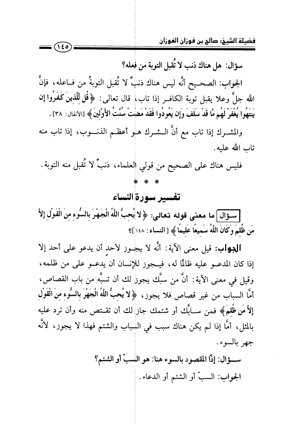 سؤال: إذا المقصود بالسوء هنا: هو السب أو الشتم؟