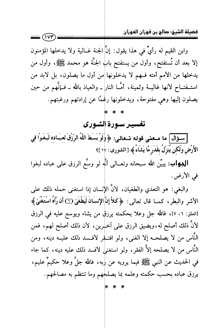 سؤال: ما معنى قوله تعالى: {وَلَوْ بَسَطَ اللَّهُ الرِّزْقَ لِعِبَادِهِ لَبَغَوْا فِي الْأَرْضِ وَلَكِنْ يُنَزِّلُ بِقَدَرٍ مَا يَشَاءُ} [الشورى: 27] ؟