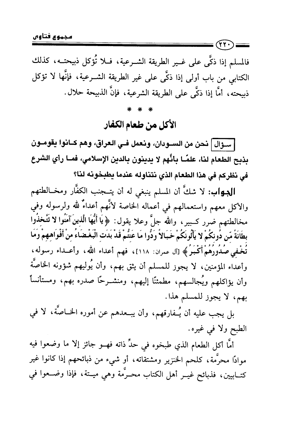 سؤال: نحن من السودان، ونعمل في العراق، وهم كانوا يقومون بذبح الطعام لنا، علمًا بأنهم لا يدينون بالدين الإسلامي، فما رأي الشرع في نظركم في هذا الطعام الذي نتناوله عندما يطبخونه لنا؟