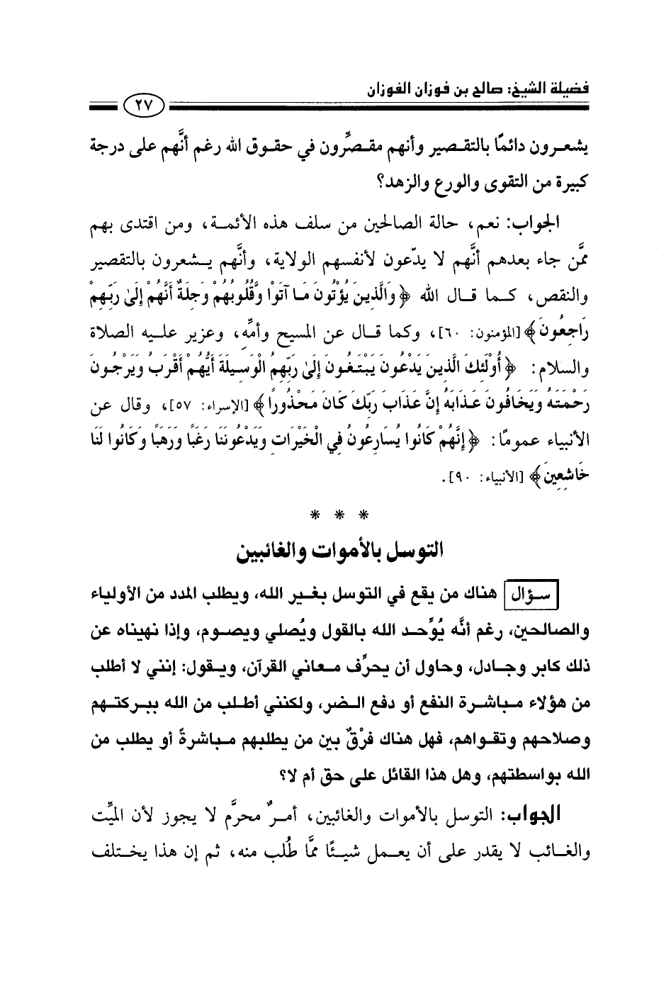 كتاب مجموع فتاوى فضيلة الشيخ صالح بن فوزان (اسم الجزء: 1)