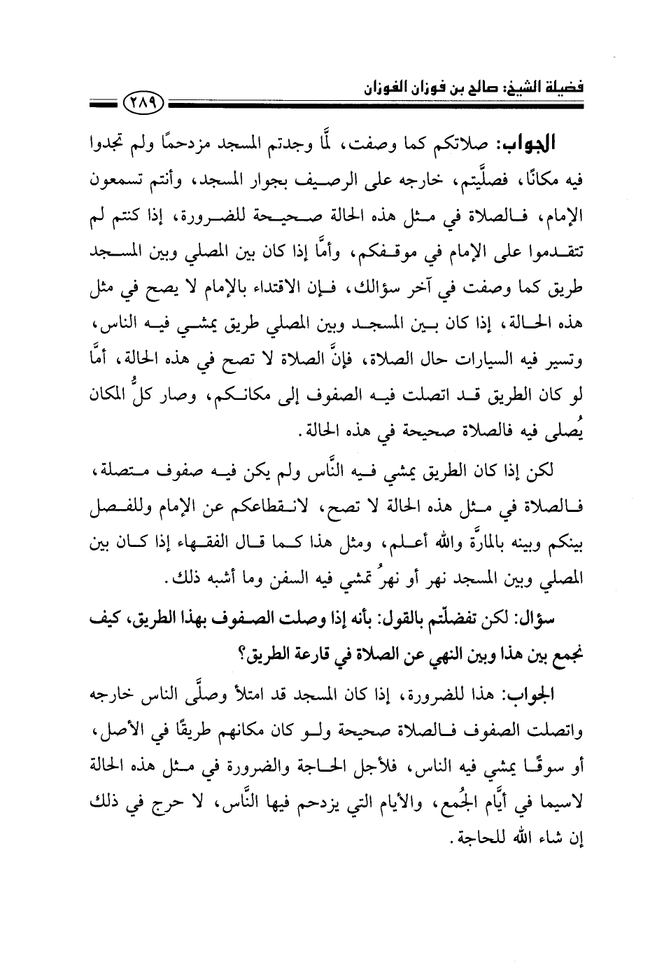سؤال: لكن تفضلتم بالقول: بأنه إذا وصلت الصفوف بهذا الطريق، كيف نجمع بين هذا وبين النهي عن الصلاة في قارعة الطريق؟