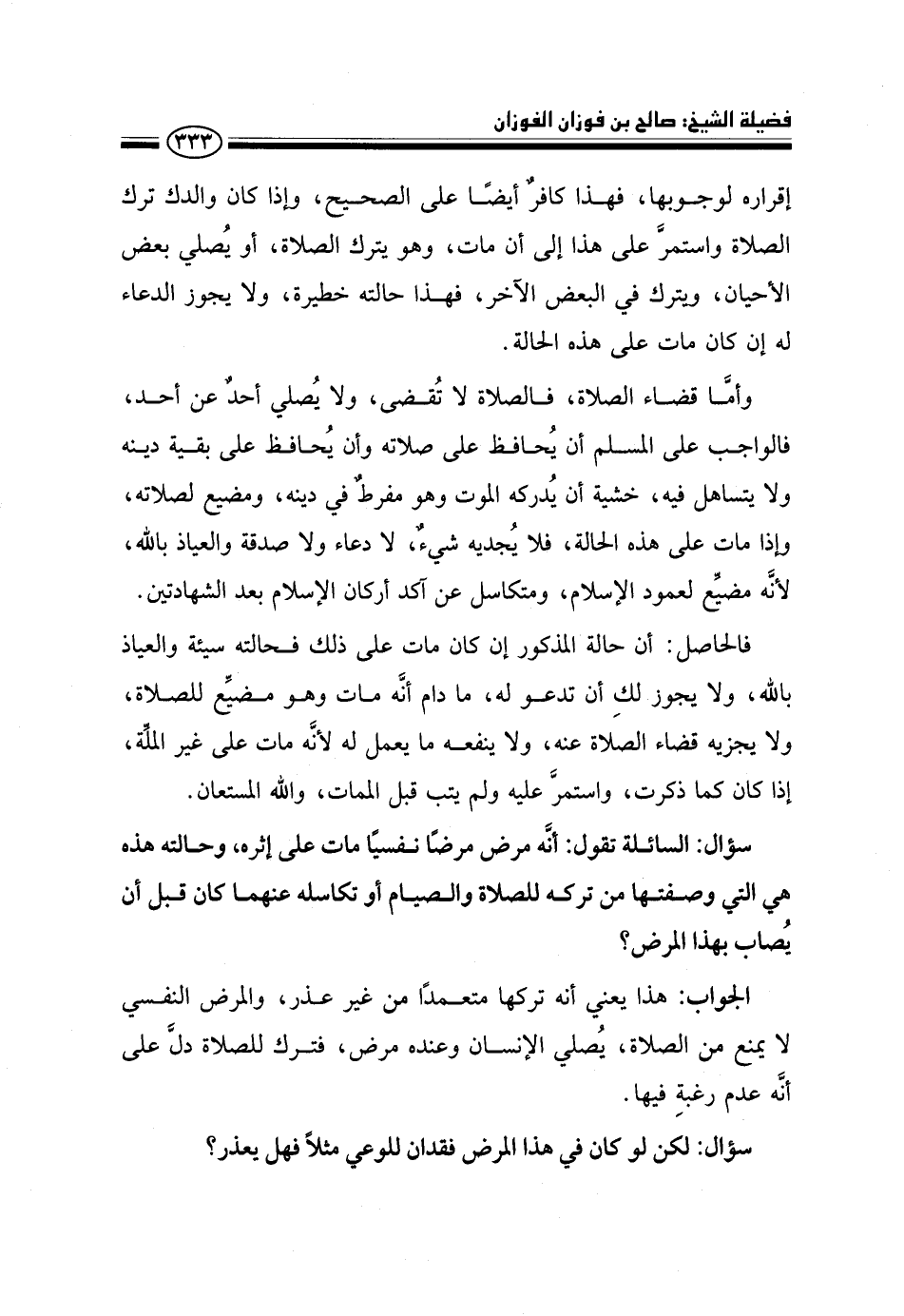 سؤال: لكن لو كان في هذا المرض فقدان للوعي مثلًا فهل يعذر؟