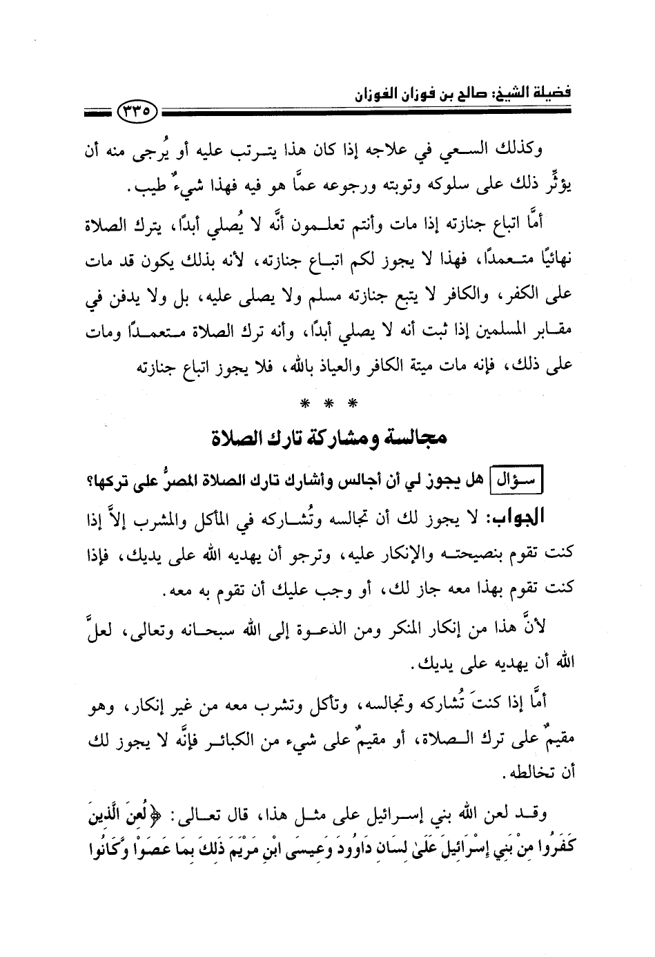 مجالسة ومشاركة تارك الصلاة