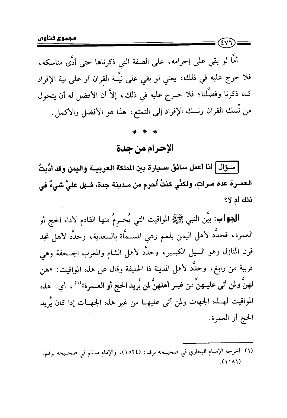 سؤال: أنا أعمل سائق سيارة بين المملكة العربية واليمن وقد أديت العمرة عدة مرات، ولكني كنت أحرم من مدينة جدة، فهل علي شيء في ذلك أم لا؟