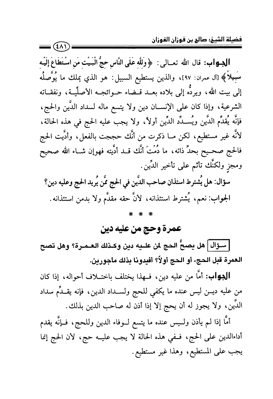 سؤال: هل يشترط استئذان صاحب الدين في الحج ممن يريد الحج وعليه دين؟