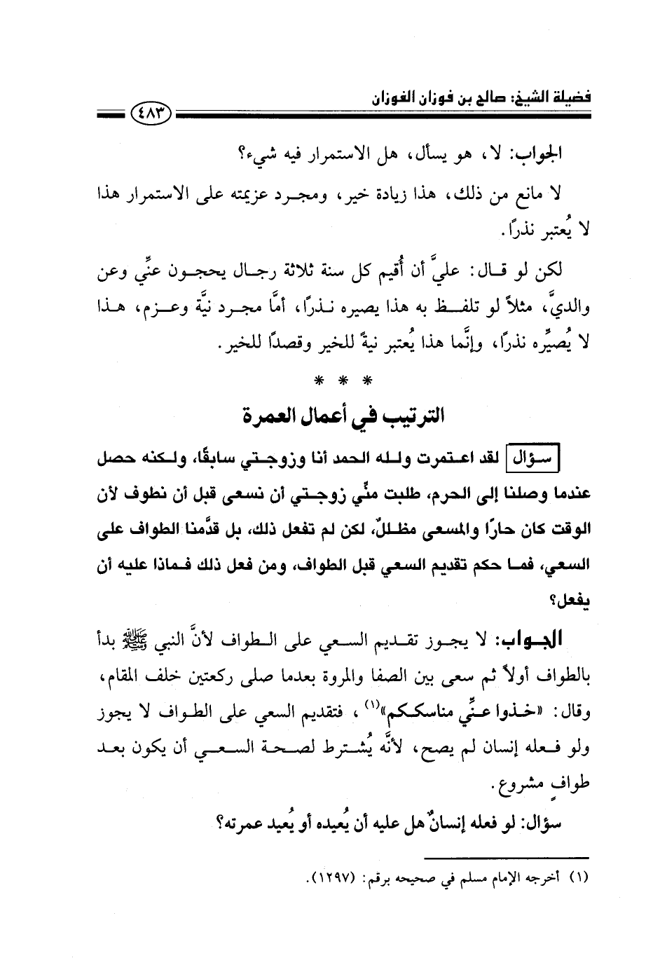 سؤال: لو فعله إنسان هل عليه أن يعيده أو يعيد عمرته؟