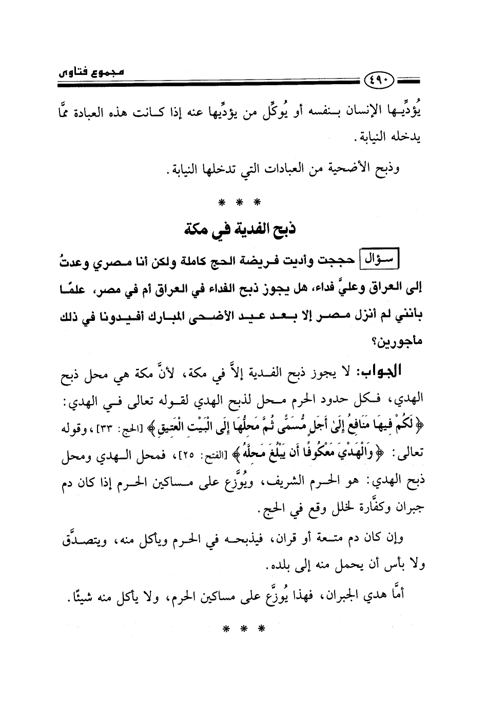 ذبح الفدية في مكة