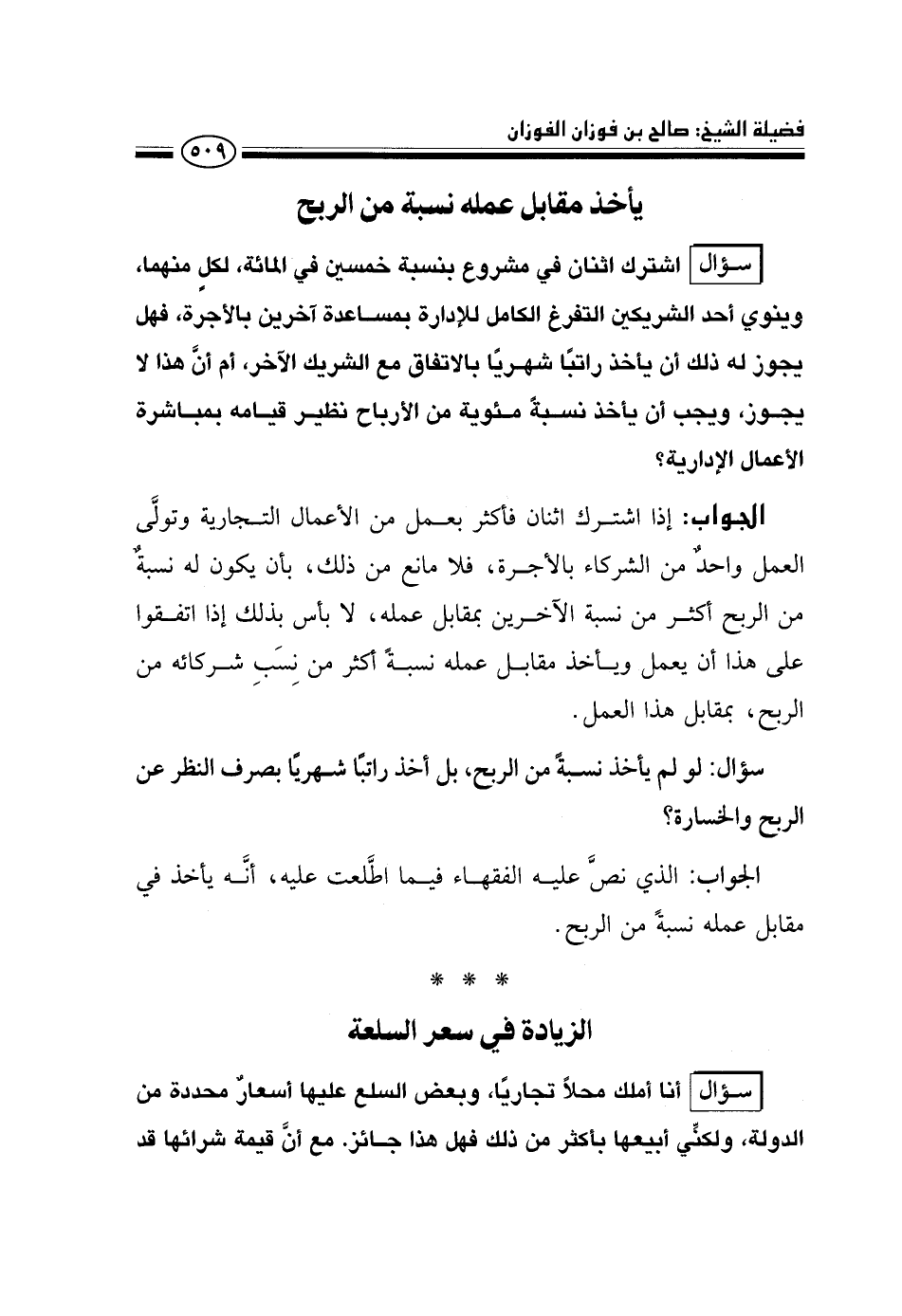 الجواب: إذا اشترك اثنان فأكثر بعمل من الأعمال التجارية وتولى العمل واحد من الشركاء بالأجرة، فلا مانع من ذلك، بأن يكون له نسبة من الربح أكثر من نسبة الآخرين بمقابل عمله، لا بأس بذلك إذا اتفقوا على هذا أن يعمل ويأخذ مقابل عمله نسبة أكثر من نسب شركائه من الربح، بمقابل هذا العمل.