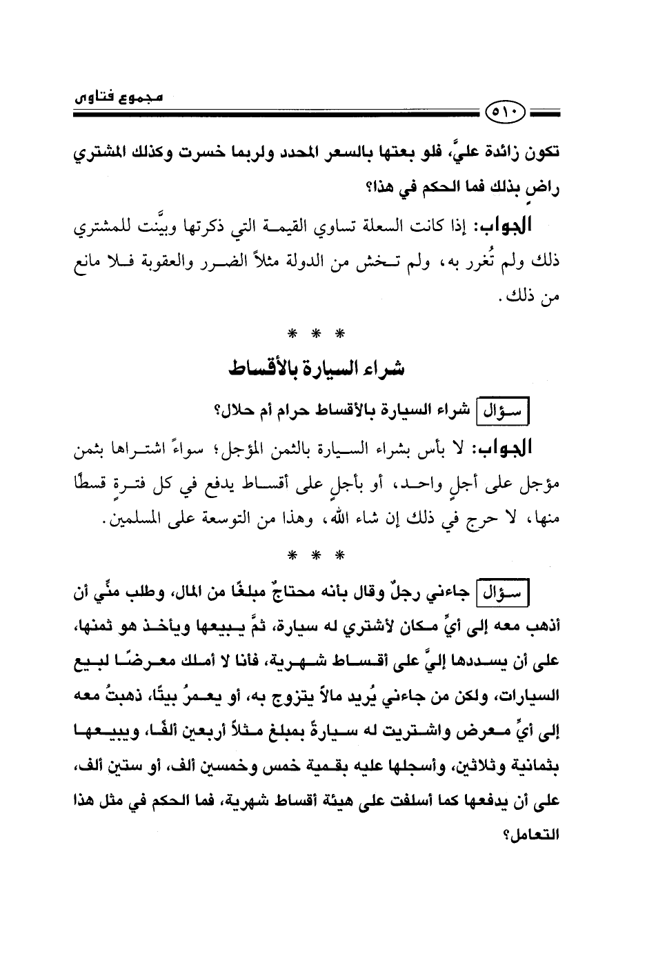 سؤال: شراء السيارة بالأقساط حرام أم حلال؟