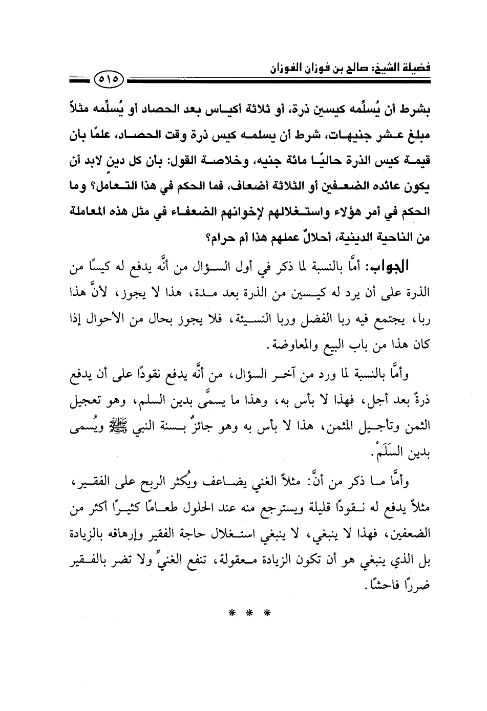 وأما ما ذكر من أن: مثلًا الغني يضاعف ويكثر الربح على الفقير، مثلًا يدفع له نقودًا قليلة ويسترجع منه عند الحلول طعامًا كثيرًا أكثر من الضعفين، فهذا لا ينبغي، لا ينبغي استغلال حاجة الفقير وإرهاقه بالزيادة بل الذي ينبغي هو أن تكون الزيادة معقولة، تنفع الغني ولا تضر بالفقير ضررًا فاحشًا.