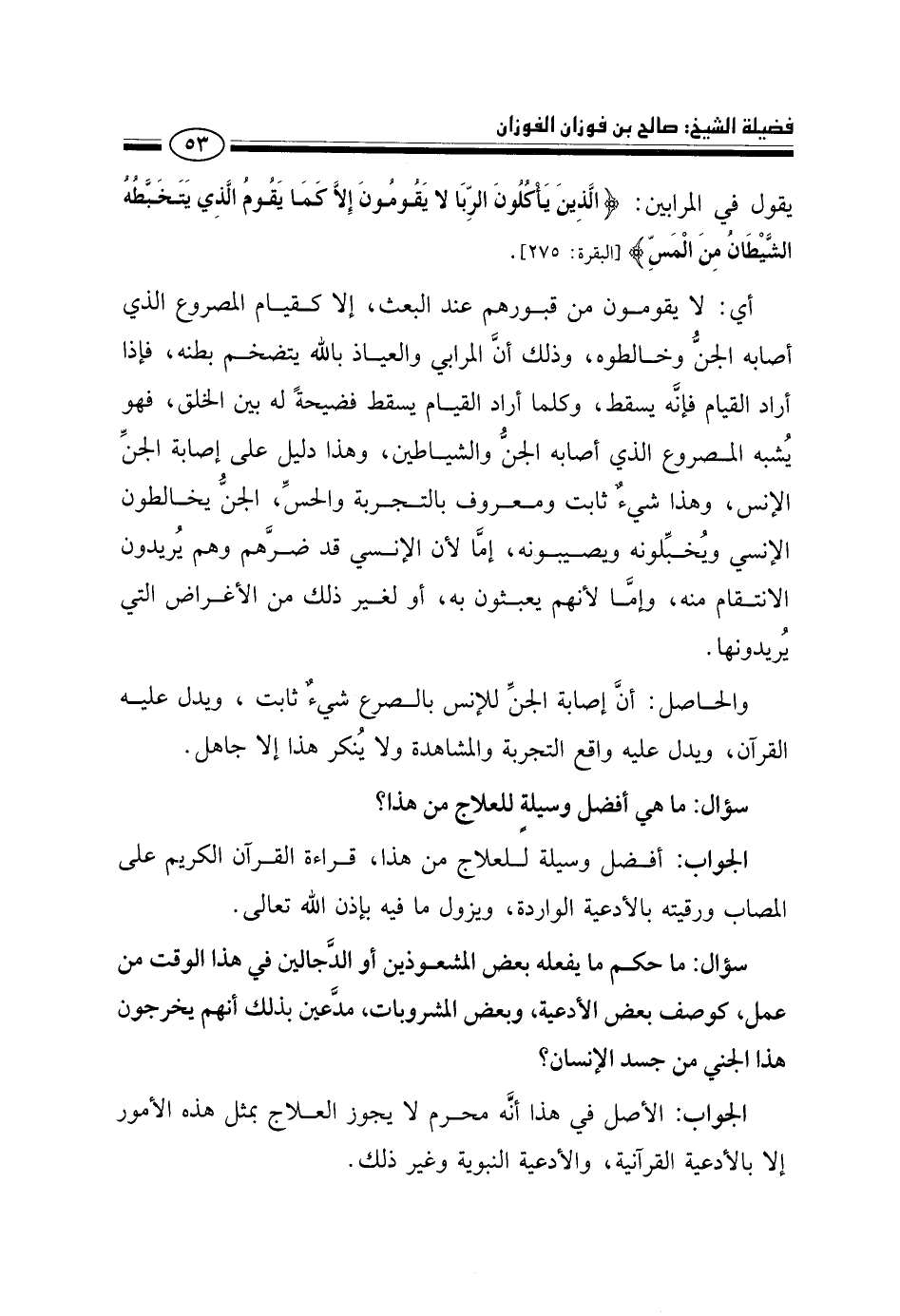يقول في المرابين: {الَّذِينَ يَأْكُلُونَ الرِّبَا لَا يَقُومُونَ إِلَّا كَمَا يَقُومُ الَّذِي يَتَخَبَّطُهُ الشَّيْطَانُ مِنَ الْمَسِّ} [البقرة: 275] .