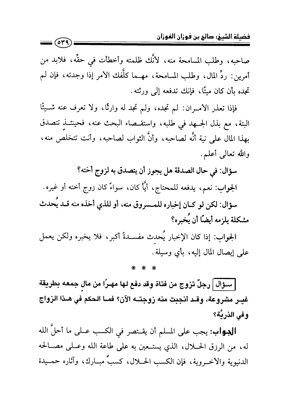 صاحبه، وطلب المسامحة منه؛ لأنك ظلمته وأخطأت في حقه، فلا بد من أمرين: رد المال، وطلب المسامحة، مهما كلفك الأمر إذا وجدته، فإن لم تجده بأن كان ميتًا، فإنك تدفعه إلى ورثته.