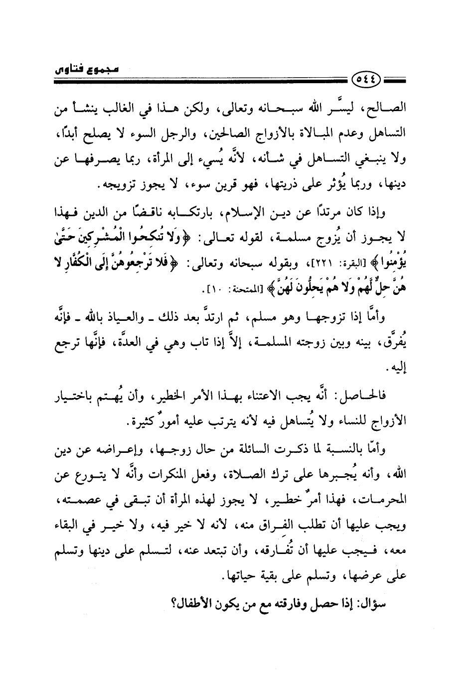 فالحاصل: أنه يجب الاعتناء بهذا الأمر الخطير، وأن يهتم باختيار الأزواج للنساء ولا يتساهل فيه لأنه يترتب عليه أمور كثيرة.
