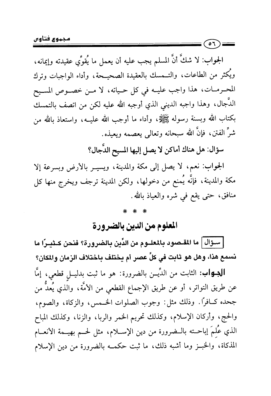 سؤال: ما المقصود بالمعلوم من الدين بالضرورة؟ فنحن كثيرًا ما نسمع هذا، وهل هو ثابت في كل عصر أم يختلف باختلاف الزمان والمكان؟