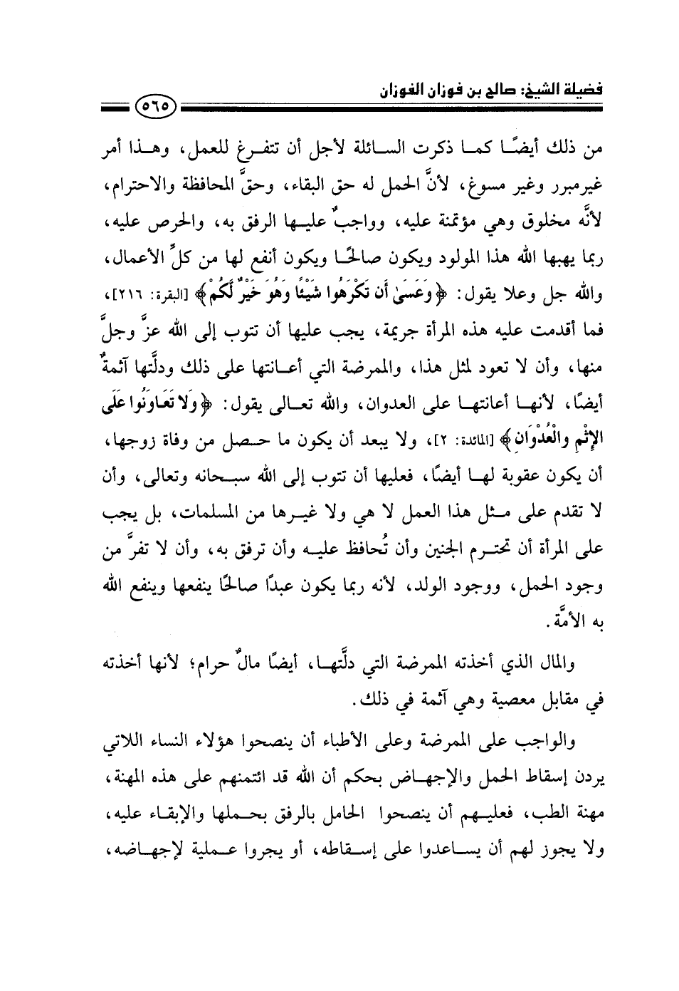 من ذلك أيضًا كما ذكرت السائلة لأجل أن تتفرغ للعمل، وهذا أمر غير مبرر وغير مسوغ؛ لأن الحمل له حق البقاء، وحق المحافظة والاحترام، لأنه مخلوق وهي مؤتمنة عليه، وواجب عليها الرفق به، والحرص عليه، ربما يهبها الله هذا المولود ويكون صالحًا ويكون أنفع لها من كل الأعمال، والله جل وعلا يقول: {وَعَسَى أَنْ تَكْرَهُوا شَيْئًا وَهُوَ خَيْرٌ لَكُمْ} [البقرة: 216] ، فما أقدمت عليه هذه المرأة جريمة، يجب عليها أن تتوب إلى الله عز وجل منها، وأن لا تعود لمثل هذا، والممرضة التي أعانتها على ذلك ودلتها آثمة أيضًا؛ لأنها أعانتها على العدوان، والله تعالى يقول: {وَلَا تَعَاوَنُوا عَلَى الْإِثْمِ وَالْعُدْوَانِ} [المائدة: 2] ، ولا يبعد أن يكون ما حصل من وفاة زوجها، أن يكون عقوبة لها أيضًا، فعليها أن تتوب إلى الله سبحانه وتعالى، وأن لا تقدم على مثل هذا العمل لا هي ولا غيرها من المسلمات، بل يجب على المرأة أن تحترم الجنين وأن تحافظ عليه وأن ترفق به، وأن لا تفر من وجود الحمل، ووجود الولد، لأنه ربما يكون عبدًا صالحًا ينفعها وينفع الله به الأمة.