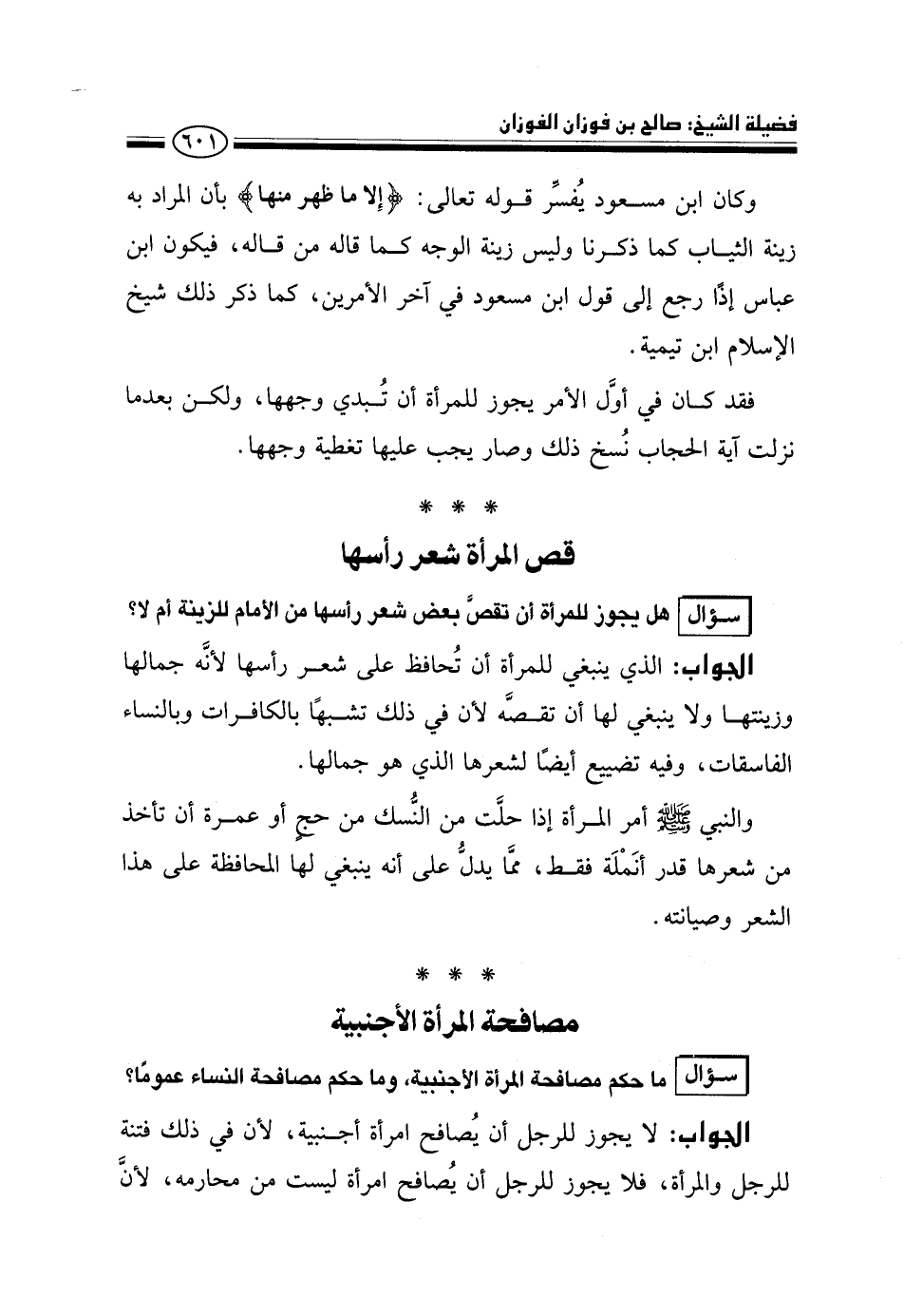 سؤال: هل يجوز للمرأة أن تقص بعض شعر رأسها من الأمام للزينة أم لا؟