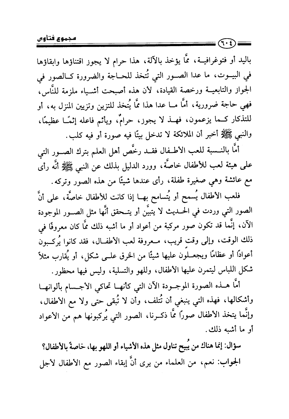أما هذه الصورة الموجودة الآن التي كأنها تحاكي الأجسام بألوانها وأشكالها، فهذه التي ينبغي أن تتلف، وأن لا تبقى حتى ولا مع الأطفال، وإنما يتخذ الأطفال صورًا مما ذكرنا، الصور التي يركبونها هم من الأعواد أو ما أشبه ذلك.