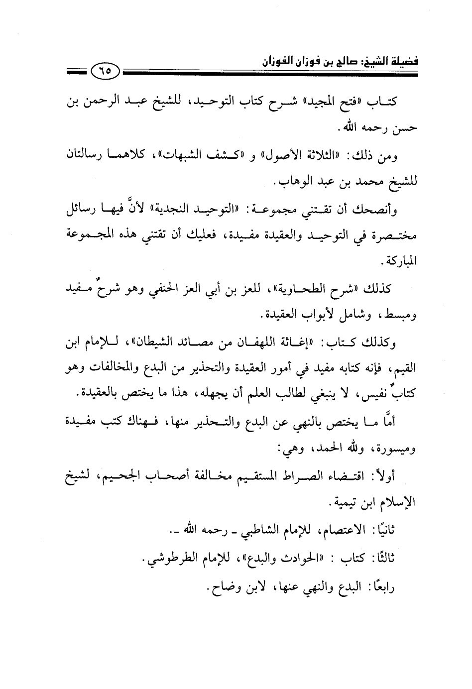 وأنصحك أن تقتني مجموعة: " التوحيد النجدية " لأن فيها رسائل مختصرة في التوحيد والعقيدة مفيدة، فعليك أن تقتني هذه المجموعة المباركة.