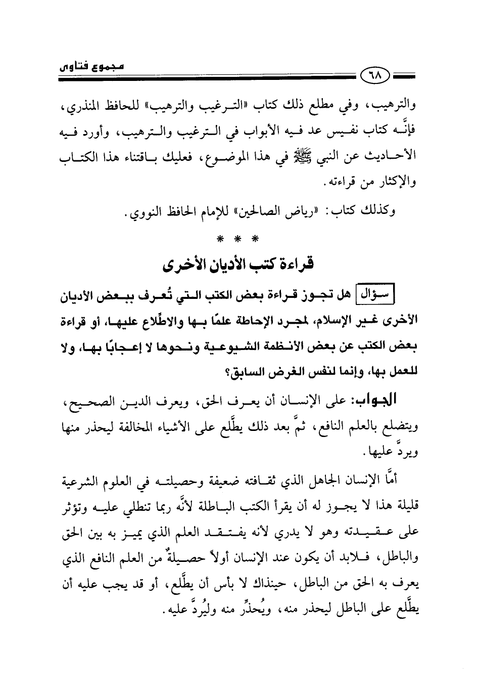 سؤال: هل تجوز قراءة بعض الكتب التي تعرف ببعض الأديان الأخرى غير الإسلام، لمجرد الإحاطة علمًا بها والاطلاع عليها، أو قراءة بعض الكتب عن بعض الأنظمة الشيوعية ونحوها لا إعجابًا بها، ولا للعمل بها، وإنما لنفس الغرض السابق؟