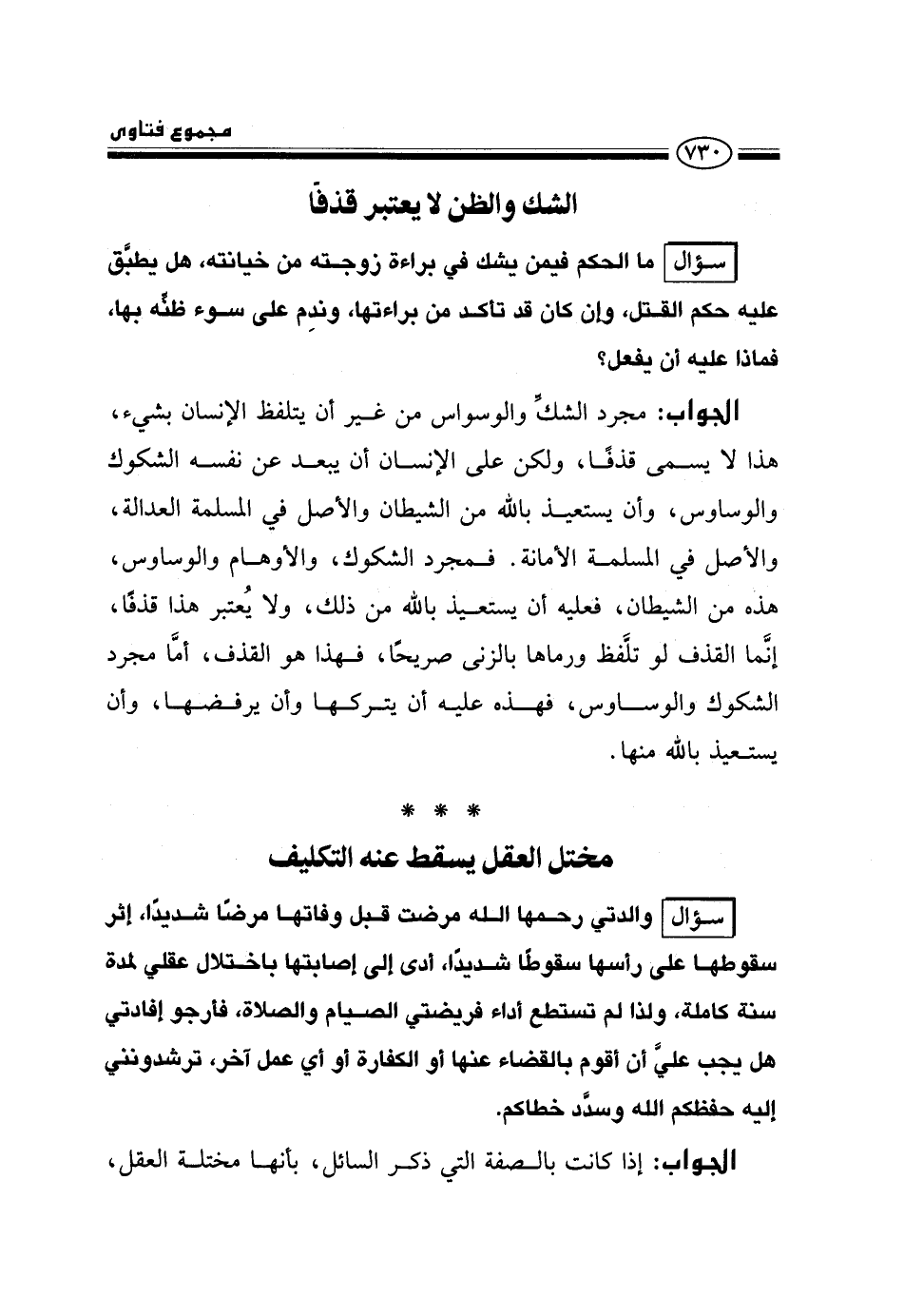 مختل العقل يسقط عنه التكليف