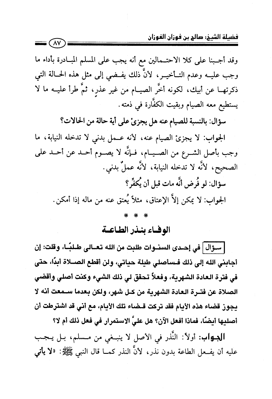 كتاب مجموع فتاوى فضيلة الشيخ صالح بن فوزان (اسم الجزء: 1)