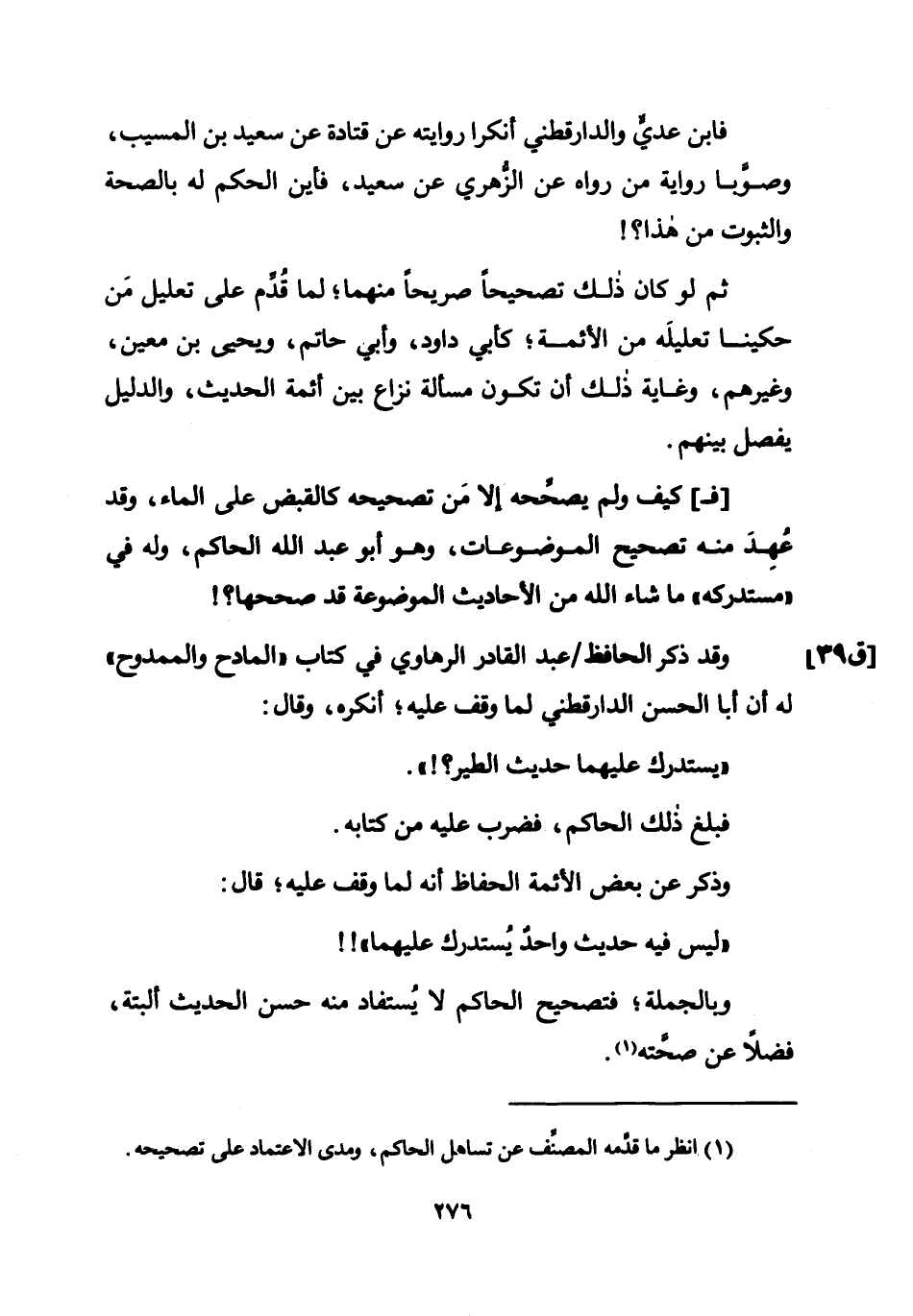 وَقد ذكر الْحَافِظ عبد الْقَادِر الرهاوي فِي كتاب المادح والممدوح لَهُ أَن أَبَا الْحسن الدَّارَقُطْنِيّ لما وقف عَلَيْهِ أنكرهُ وَقَالَ يسْتَدرك عَلَيْهِمَا حَدِيث الطير فَبلغ ذَلِك الْحَاكِم فَضرب عَلَيْهِ من كِتَابه وَذكر عَن بعض الْأَئِمَّة الْحفاظ أَنه لما وقف عَلَيْهِ قَالَ لَيْسَ فِيهِ حَدِيث وَاحِد يسْتَدرك عَلَيْهِمَا وَبِالْجُمْلَةِ فتصحيح الْحَاكِم لَا يُسْتَفَاد مِنْهُ حسن الحَدِيث أَلْبَتَّة فضلا عَن صِحَّته