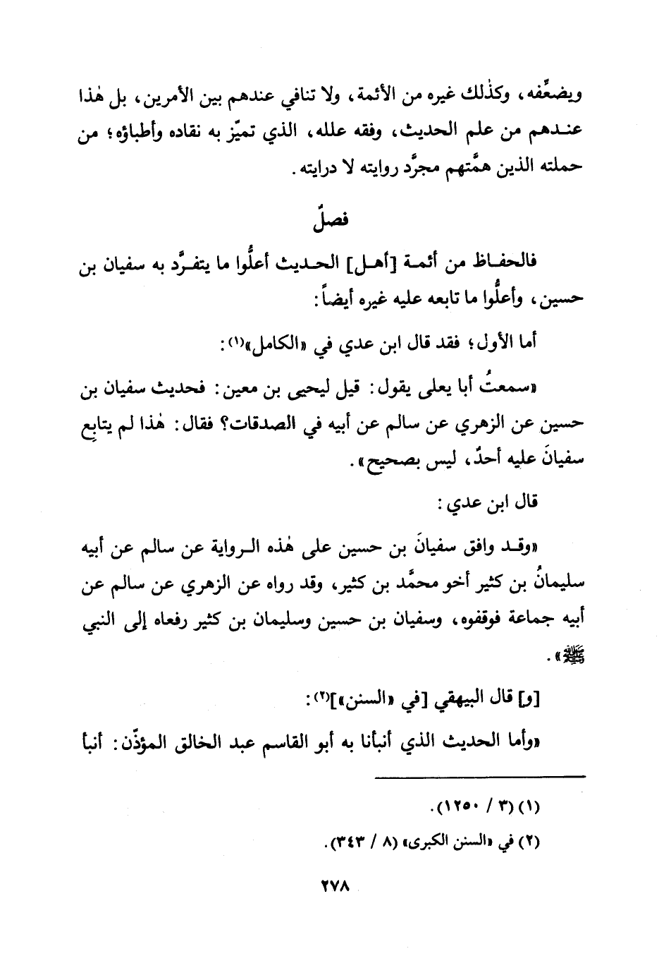 فالحفاظ من أَئِمَّة أهل الحَدِيث أعلوا مَا يتفرد بِهِ سُفْيَان بن حُسَيْن وأعلوا مَا تَابعه عَلَيْهِ غَيره أَيْضا أما الأول فقد قَالَ ابْن عدي فِي الْكَامِل سَمِعت أَبَا يعلى يَقُول قيل ليحيى بن معِين فَحَدِيث سُفْيَان بن حُسَيْن عَن الزُّهْرِيّ عَن سَالم عَن أَبِيه فِي الصَّدقَات فَقَالَ هَذَا لم يُتَابع سُفْيَان عَلَيْهِ أحد لَيْسَ بِصَحِيح قَالَ ابْن عدي وَقد وَافق سُفْيَان بن حُسَيْن على هَذِه الرِّوَايَة عَن سَالم عَن أَبِيه سُلَيْمَان بن كثير أَخُو مُحَمَّد بن كثير وَقد رَوَاهُ عَن الزُّهْرِيّ عَن سَالم عَن أَبِيه جمَاعَة فوقفوه وسُفْيَان بن حُسَيْن وَسليمَان بن كثير رَفَعَاهُ إِلَى النَّبِي صلى الله عَلَيْهِ وَسلم
