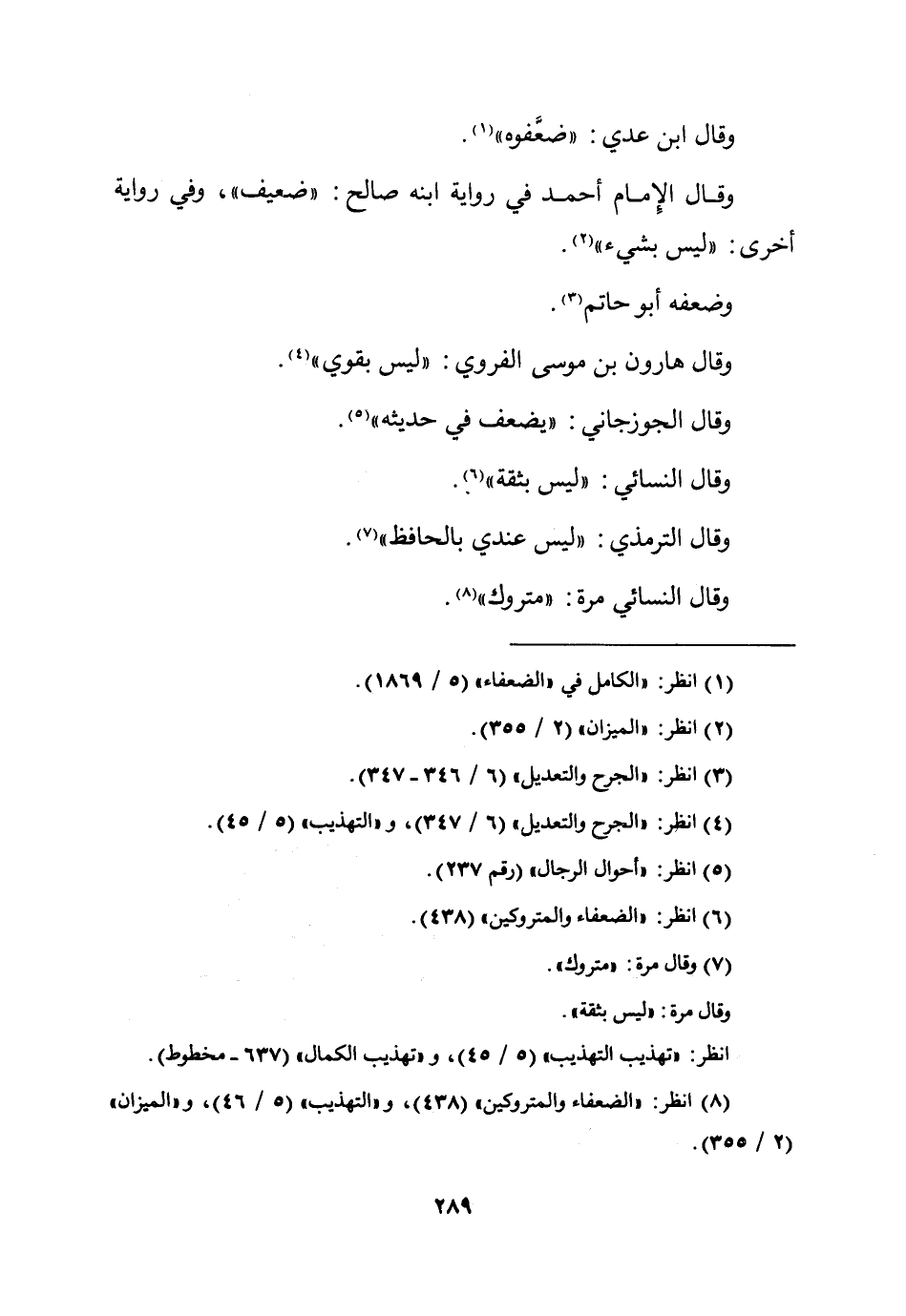 وَقَالَ ابْن عدي ضَعَّفُوهُ وَقَالَ الإِمَام أَحْمد فِي رِوَايَة ابْنه صَالح ضَعِيف وَفِي رِوَايَة أُخْرَى لَيْسَ بِشَيْء وَضَعفه أَبُو حَاتِم وَقَالَ هَارُون بن مُوسَى الْفَروِي لَيْسَ بِقَوي وَقَالَ الْجوزجَاني يضعف فِي حَدِيثه وَقَالَ النَّسَائِيّ لَيْسَ بِثِقَة وَقَالَ التِّرْمِذِيّ لَيْسَ عِنْدِي بِالْحَافِظِ وَقَالَ النَّسَائِيّ مرّة مَتْرُوك
