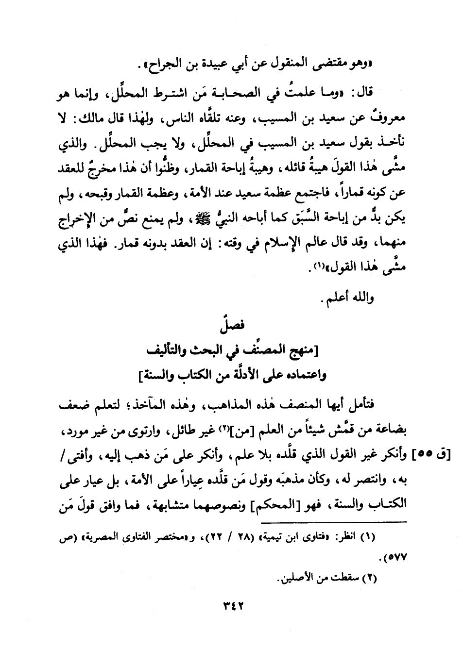 (مَنْهَج المُصَنّف فِي الْبَحْث والتأليف واعتماده على الْأَدِلَّة من الْكتاب وَالسّنة)